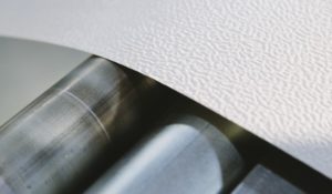 Lamiera grecata profilo Italcoppo rivestita da 1,5 cm di poliuretano nudo. Questo prodotto, rispetto alla semplice lamiera grecata, ha un miglior isolamento acustico, una riduzione